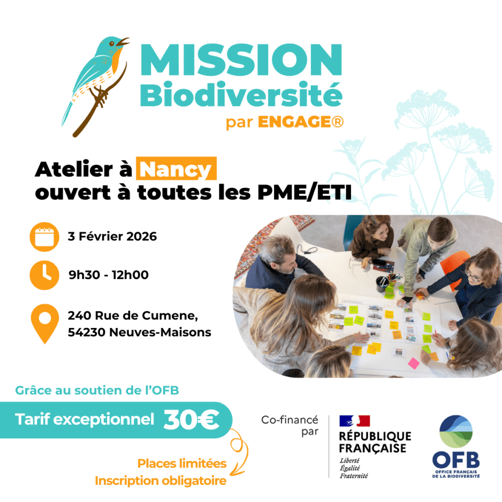 Nous sommes heureux d’être partenaire d’ENGAGE dans le cadre du déploiement de l’atelier MISSION Biodiversité dans le Grand Est. Dans un contexte marqué par les crises successives et les multiples incertitudes, la résilience est en effet un impératif stratégique pour les entreprises et la biodiversité en est un levier.